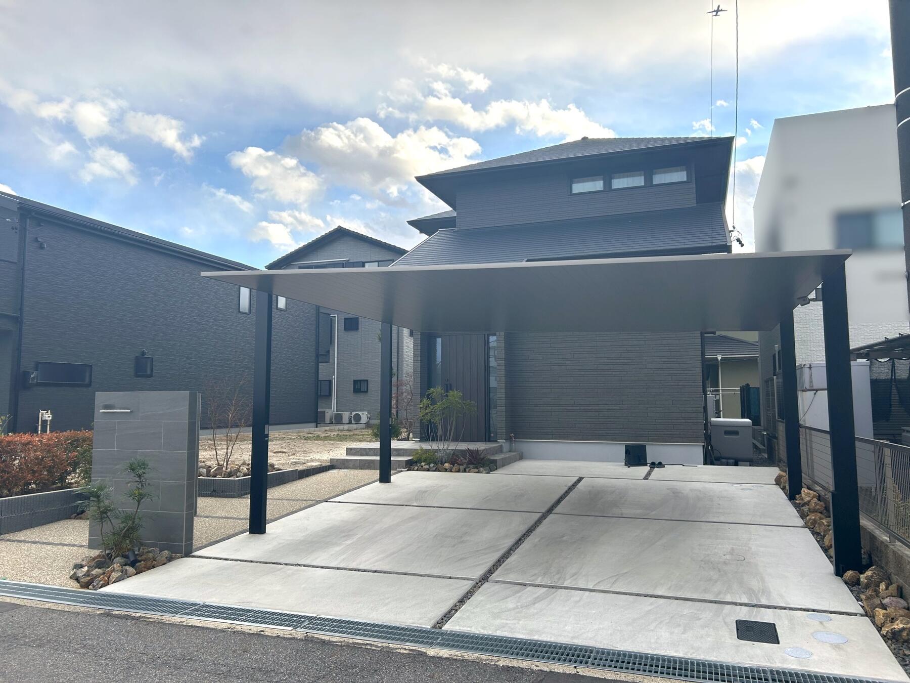 LIXIL カーポートSCワイド・タイル門袖のオープン外構