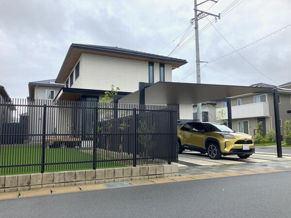 LIXIL カーポートSCワイド・タイル門袖のオープン外構