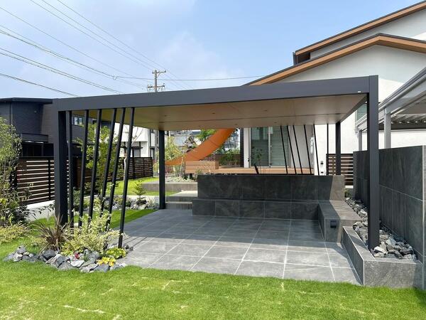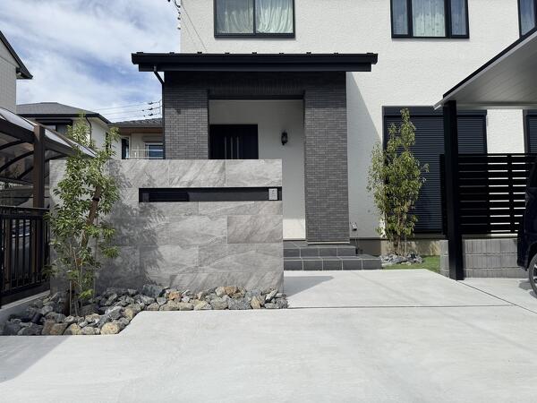 外観の雰囲気と調和するスタイリッシュな外構
