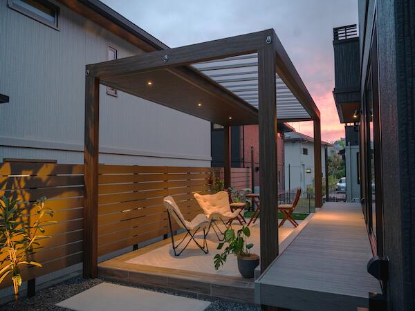 夜も楽しめるアウトドアリビング